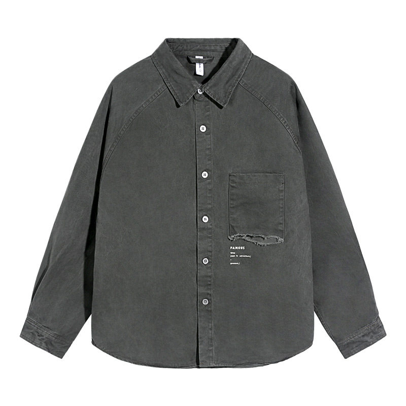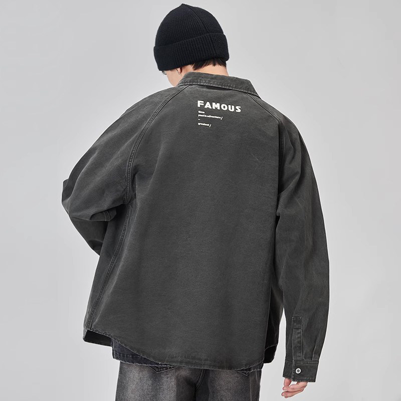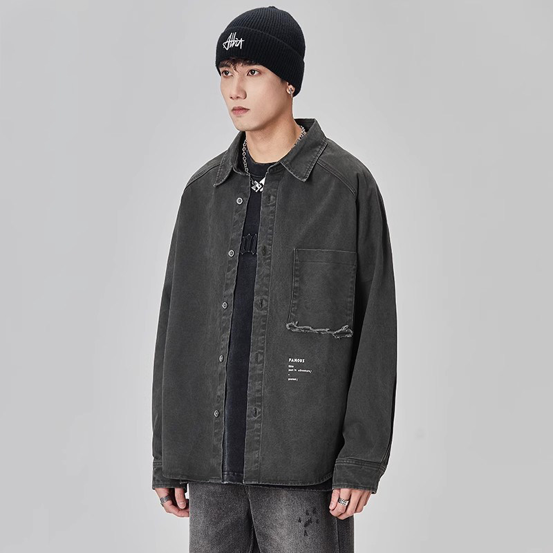 ALLIN 美式复古水洗衬衫男秋冬长袖上衣休闲重磅工装衬衣翻领外套