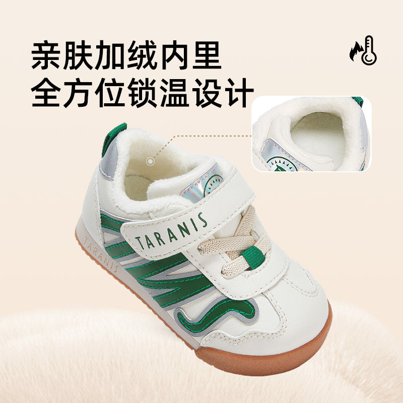 泰兰尼斯秋冬款小白鞋男童保暖鞋子学步鞋女宝宝婴儿鞋软底机能鞋