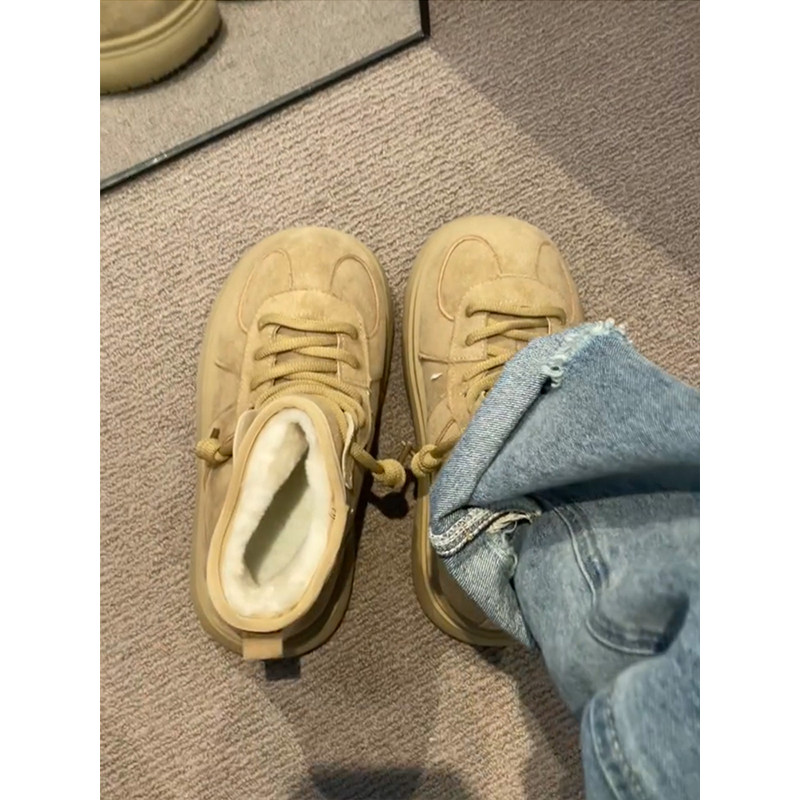 miu家厚底雪地靴女冬季真皮短靴羊毛侧拉链增高厚底加绒毛毛棉鞋