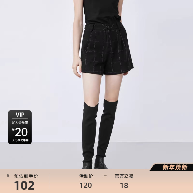 S·DEER圣迪奥女装冬季复古休闲撞色格纹A字毛呢短裤S21480914