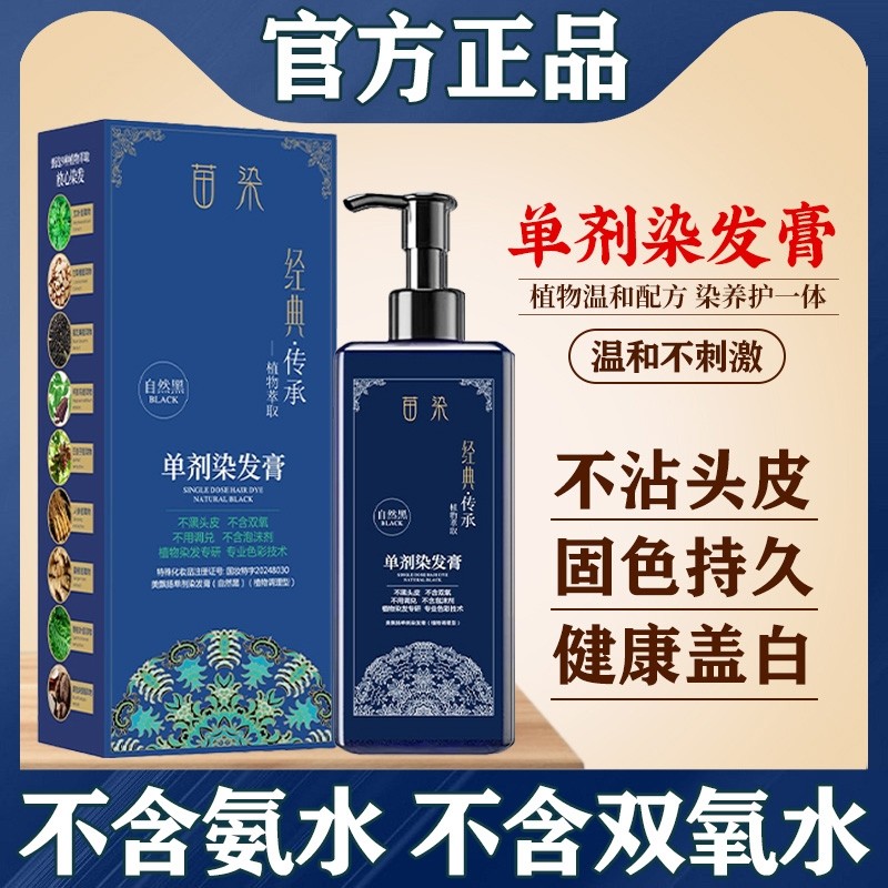 苗染植物萃取单剂染发膏草本自然黑滋养亲肤温和持久盖白染发膏