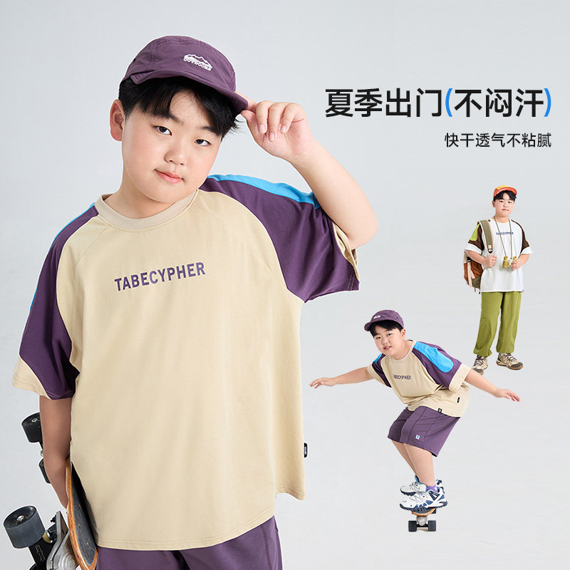 索罗娜t恤小猪托尼胖男童短袖t恤儿童夏装男大童大码童装加肥加大