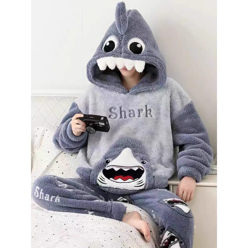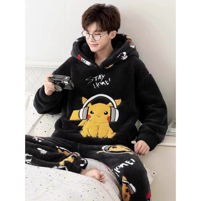 男士睡衣秋冬款冬季珊瑚绒加厚加绒法兰绒卡通家居服冬天男款套装