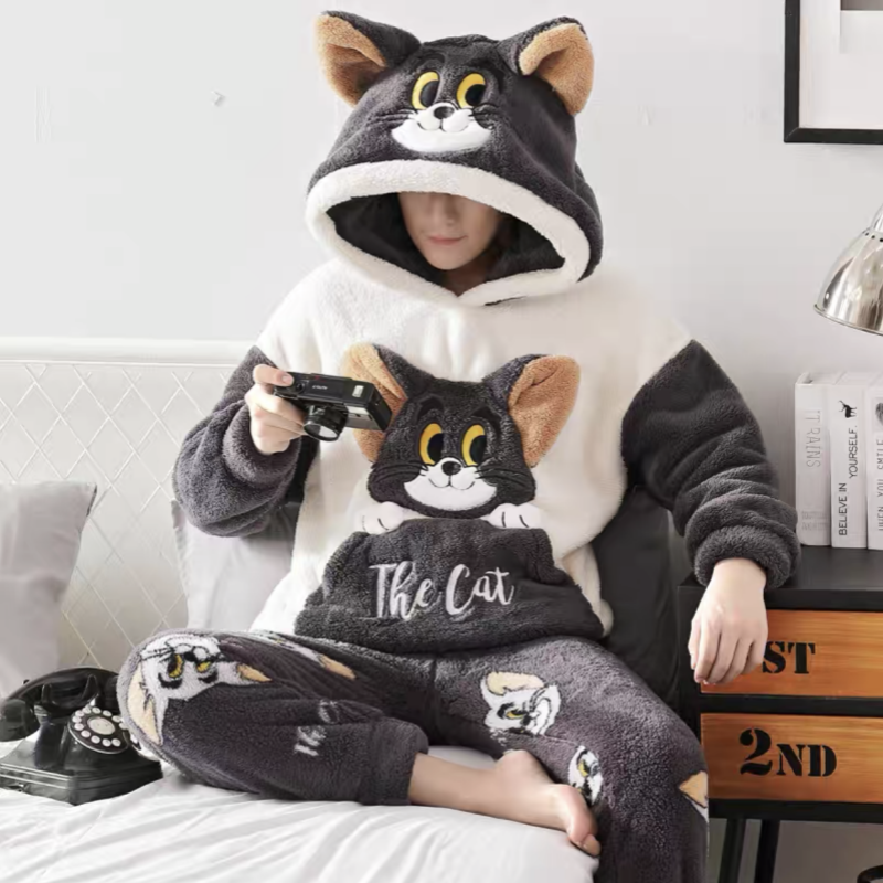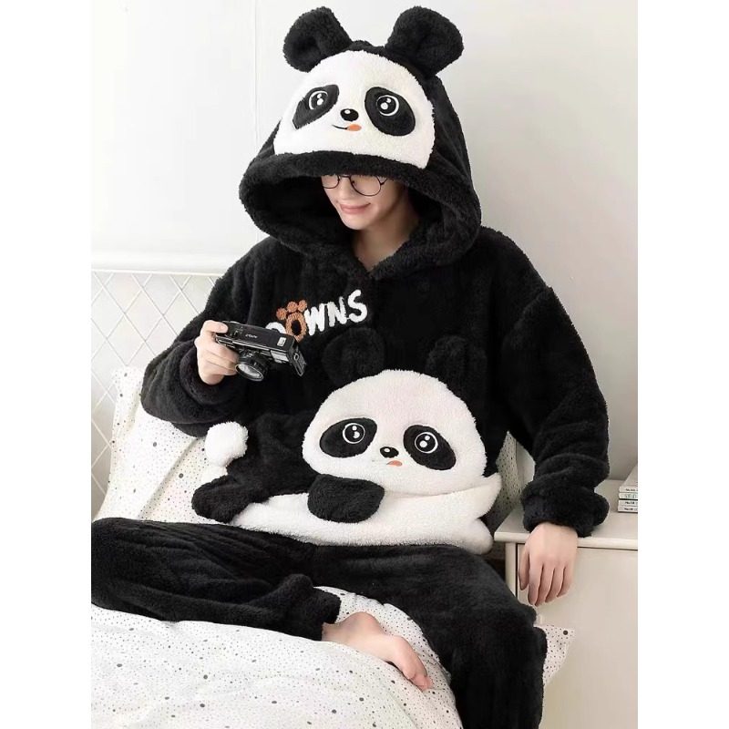 肖战同款猫人暖绒绒家居服半边绒男女2025新款冬季睡衣可外穿加厚