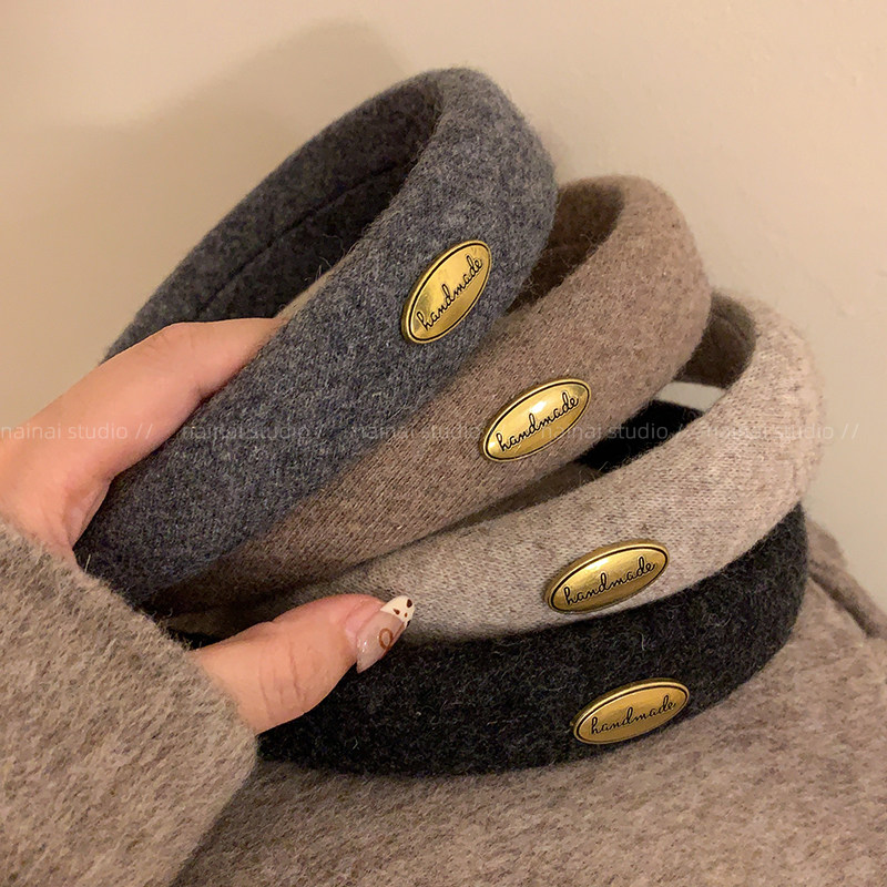 温柔燕麦色~质感超好!金标发箍高级感毛呢秋冬复古法式头箍发卡