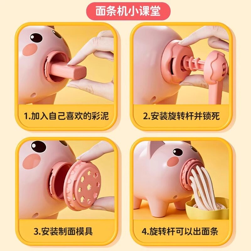 小猪彩泥面条机食品级无毒粘土橡皮泥幼儿专用手工玩具老师推荐