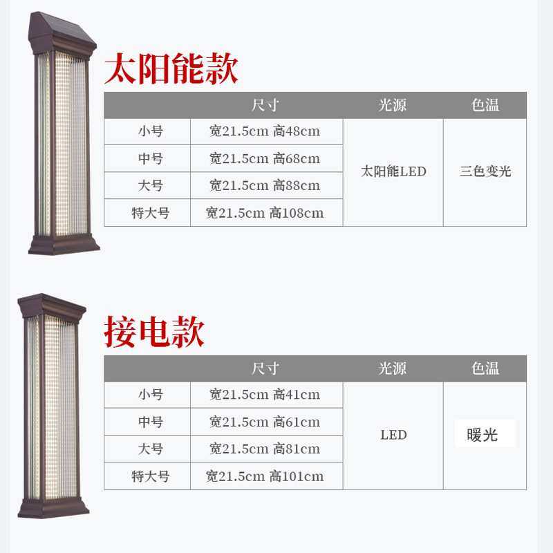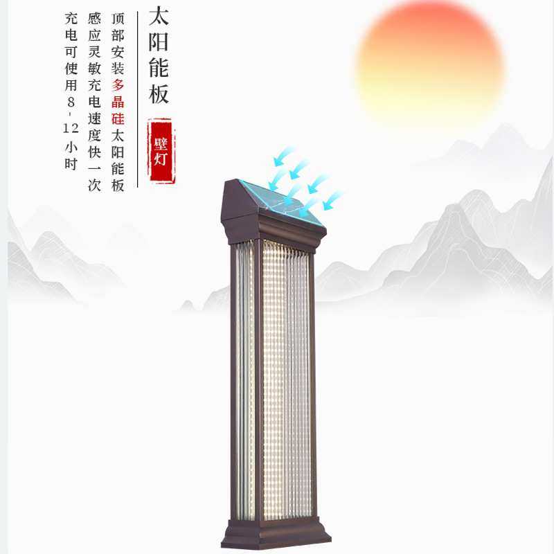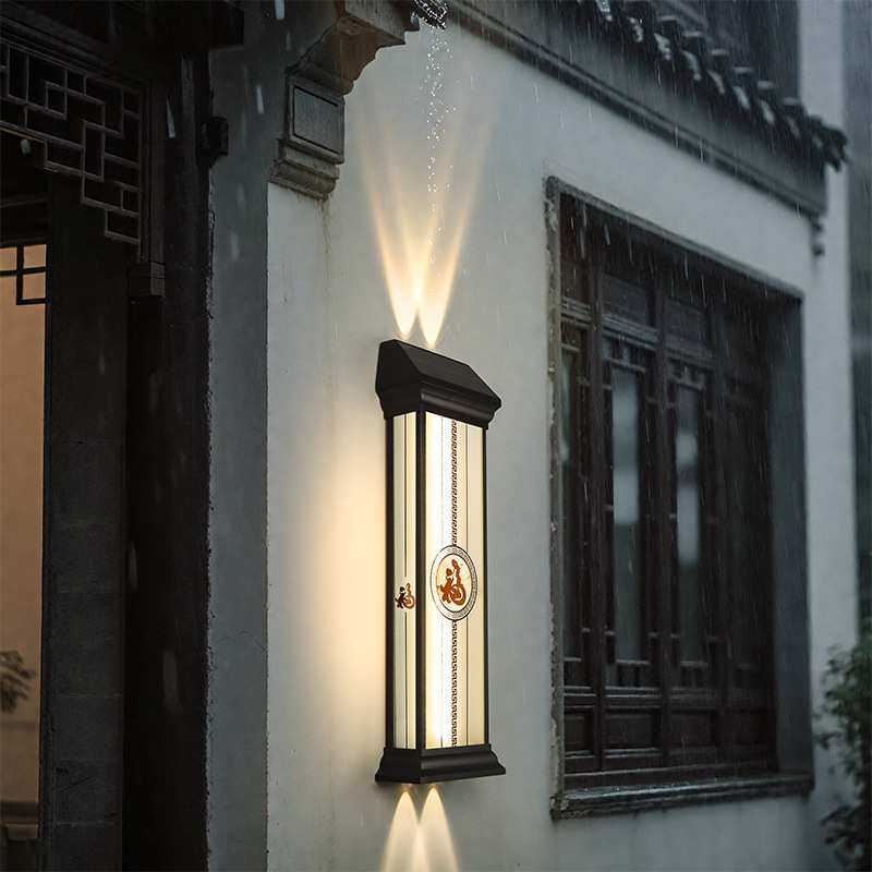 新中式太阳能壁灯户外防水别墅大门口两侧柱子灯室外露台围墙射灯
