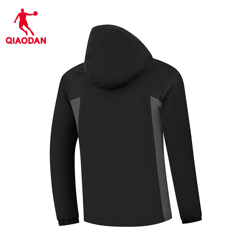 特步防泼水夹克外套男春秋季户外风衣连帽黑色上衣防风运动训练服