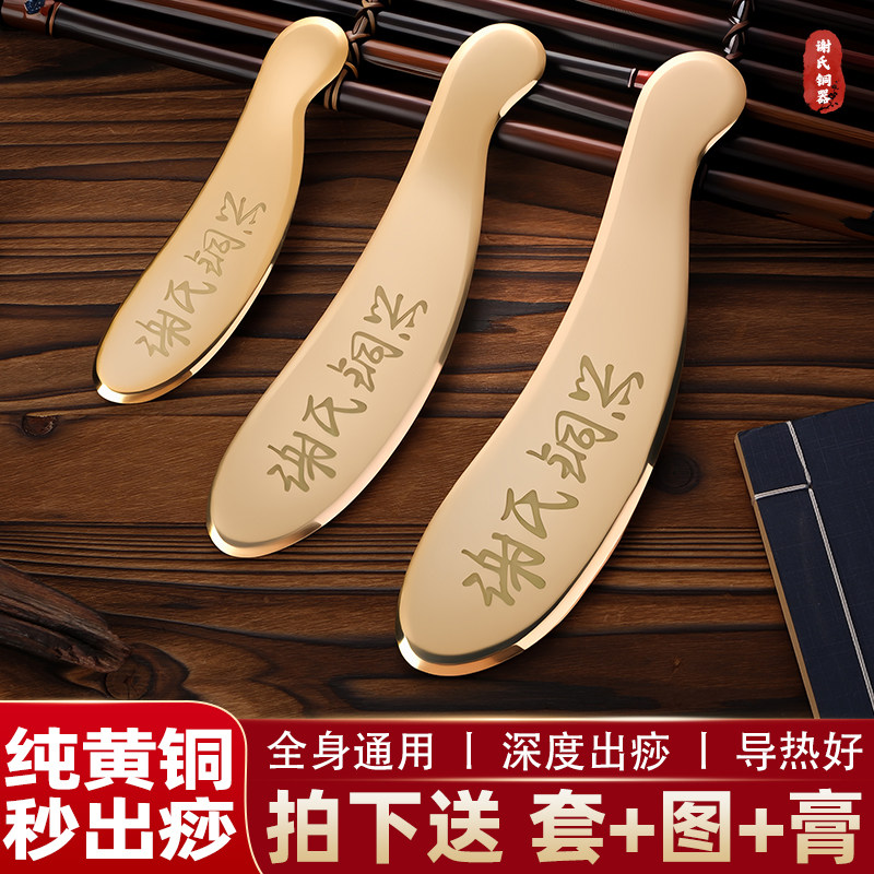 纯黄铜谢氏砭法虎符刮痧板肩颈背部黄铜砭全身通用刮痧刀纯铜经络