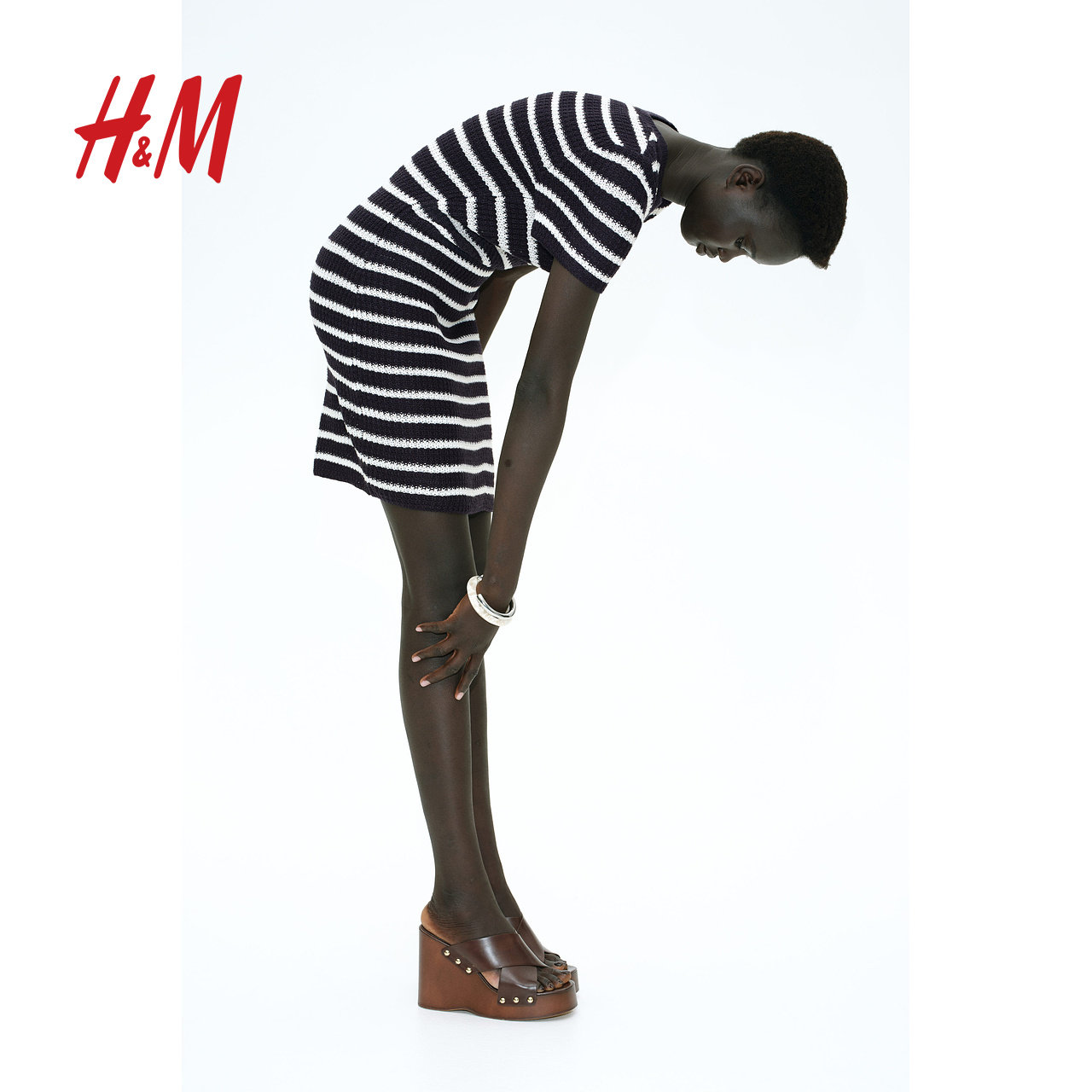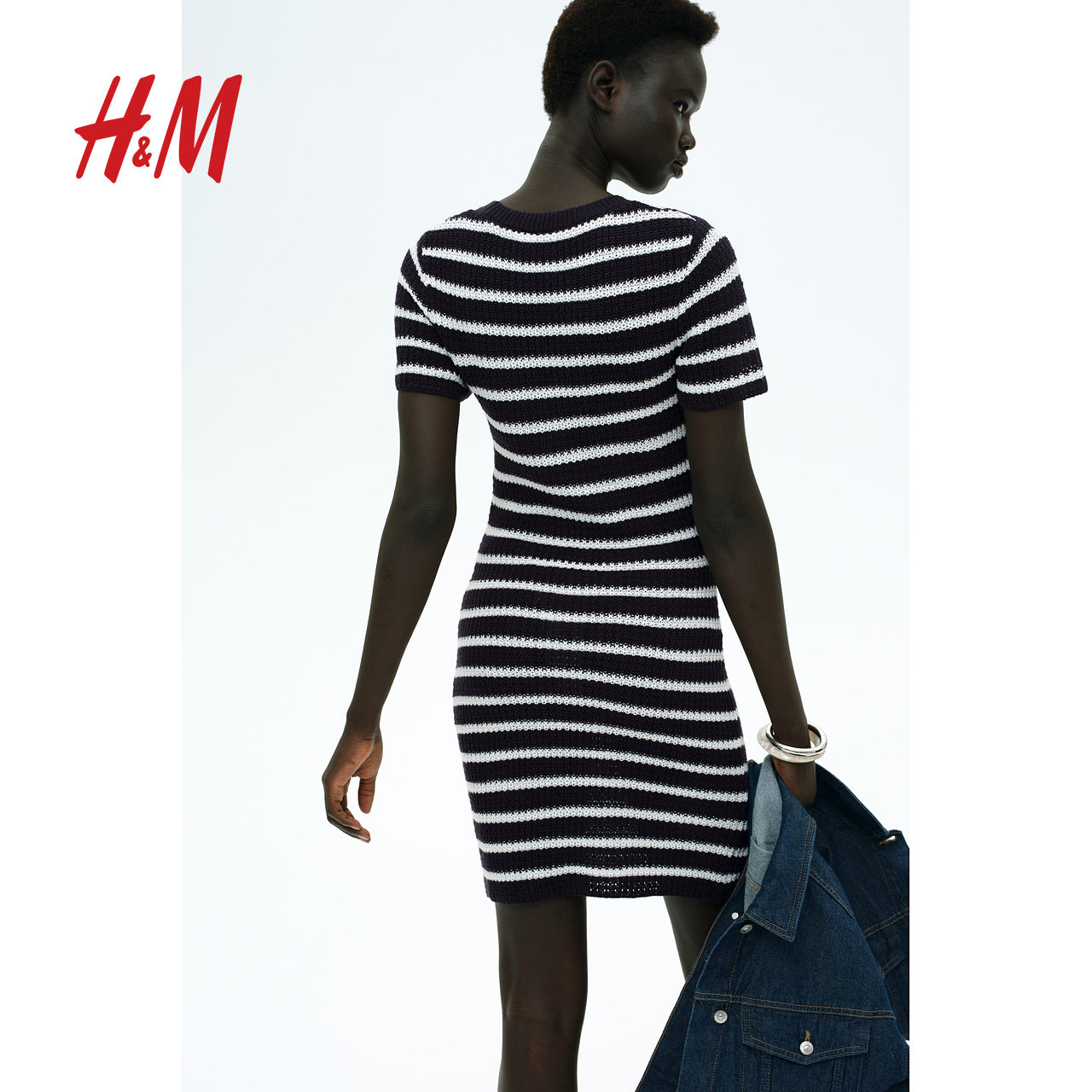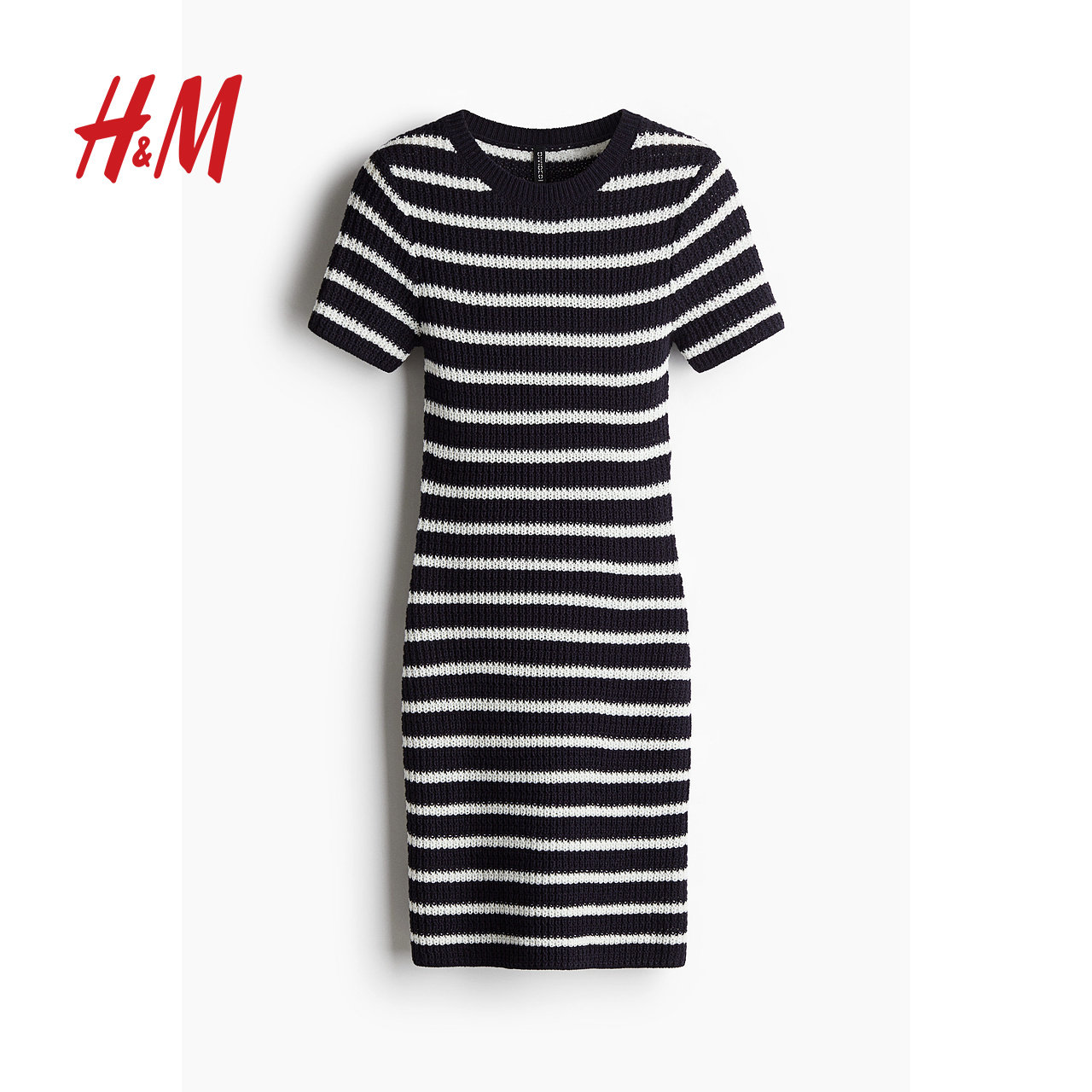 HM女装连衣裙2025年5冬季新款黑白穿搭针织紧身连衣裙1276352