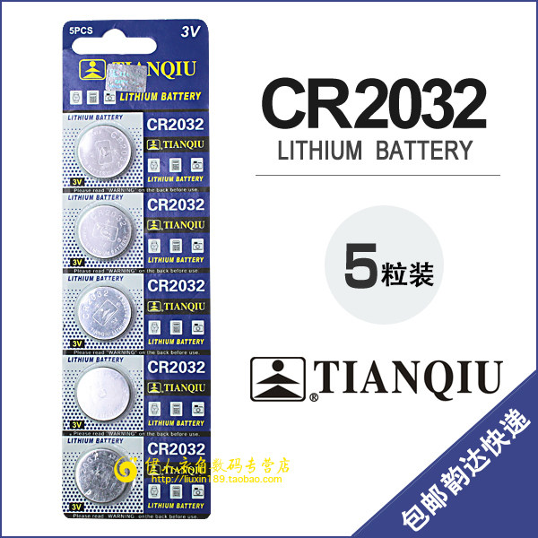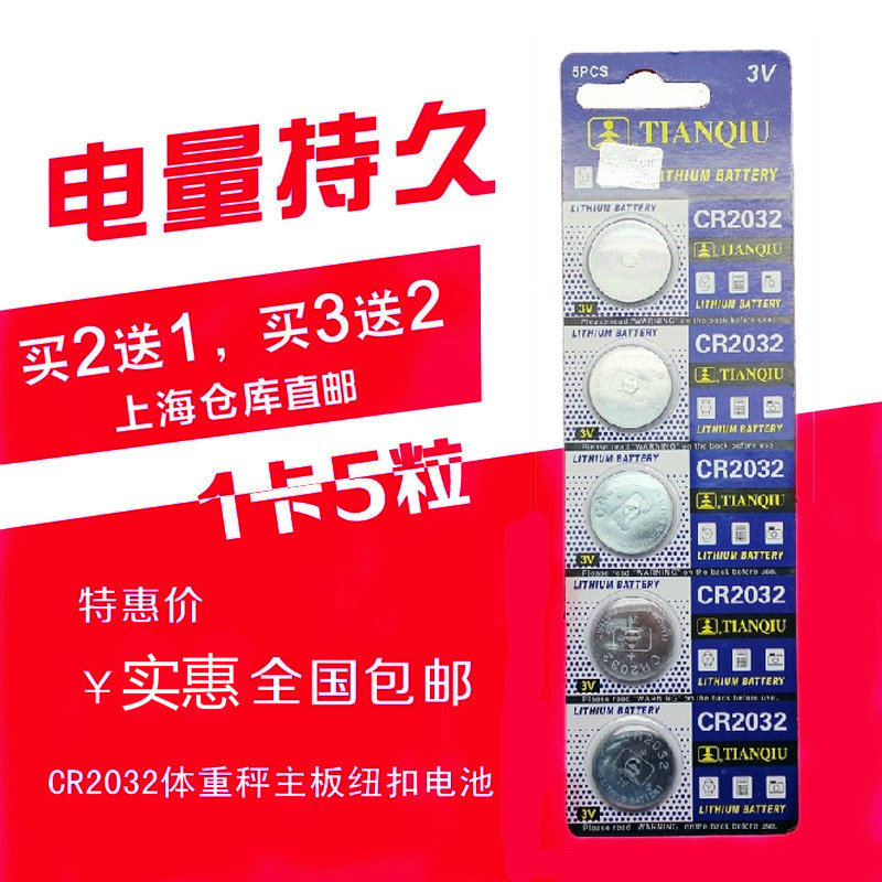 天球CR2032纽扣电池 3V体重称防盗器电子秤电脑主板电池5颗