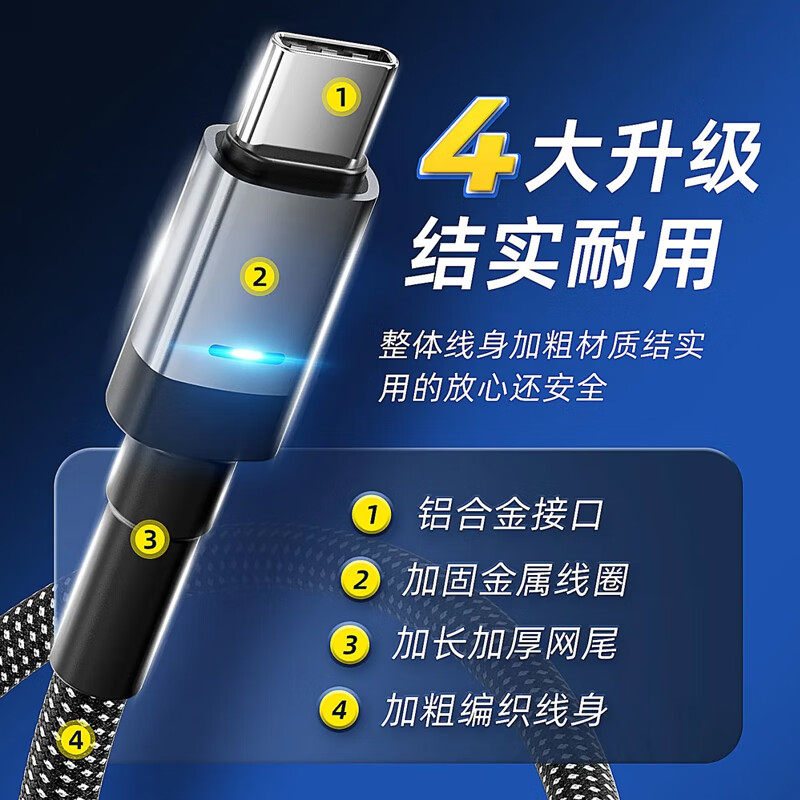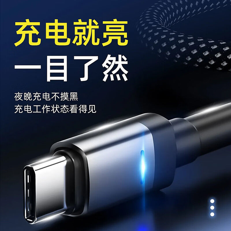 艾胜者Type-c数据线100W超级快充呼吸灯自动断电tpyec手机6A闪充电线器车载tapyc适用华为P70荣耀magic小米op