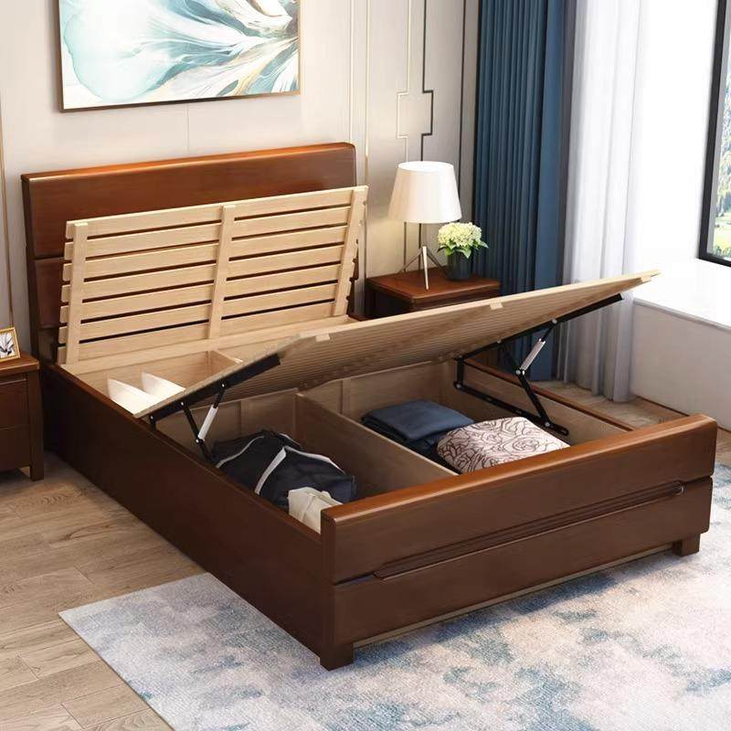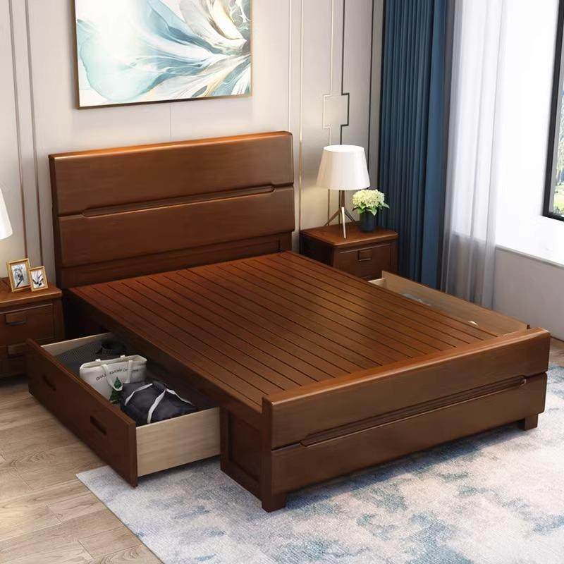 橡胶木实木床现代简约中式1.2米1.5米1.8m双人床卧室储物家具大床