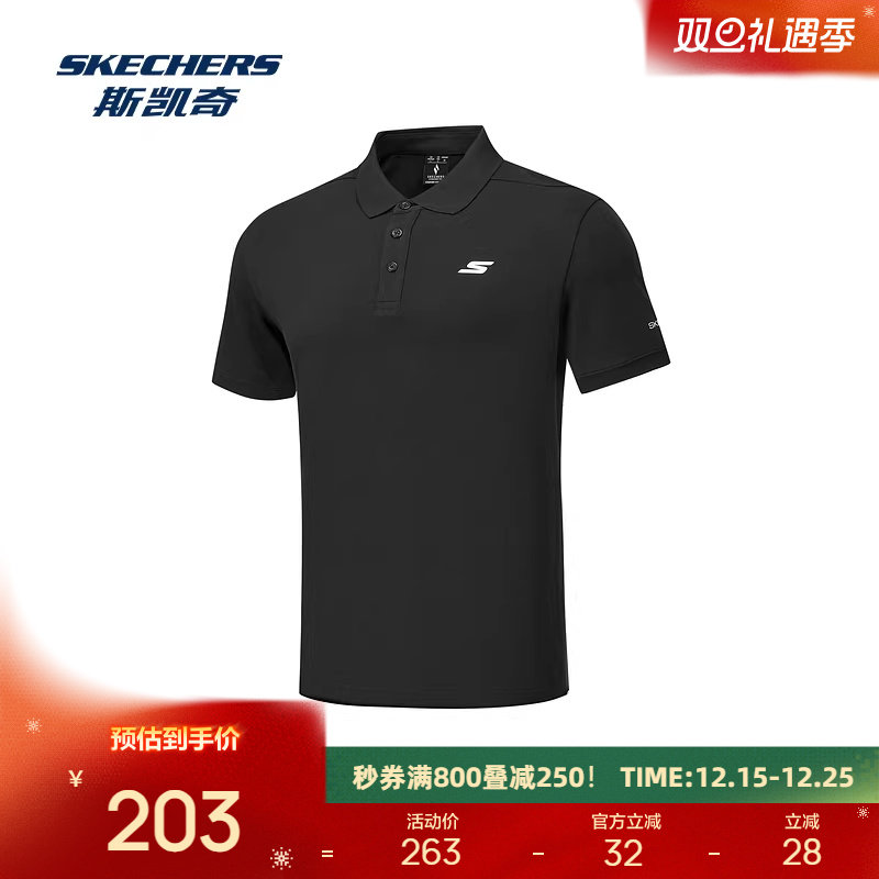 斯凯奇男士运动短袖2025冬季吸湿速干凉感透气柔软舒适户外POLO衫