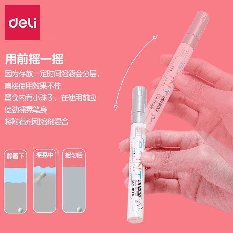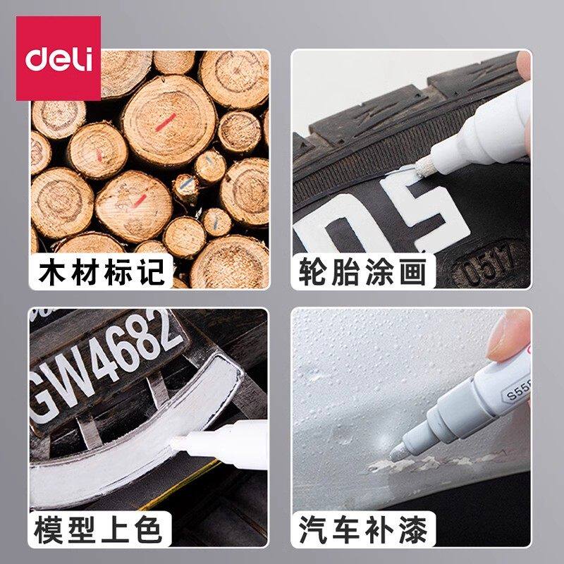 得力油漆笔白色记号笔油性笔补漆笔S558汽车涂鸦石碑笔涂鸦笔加粗