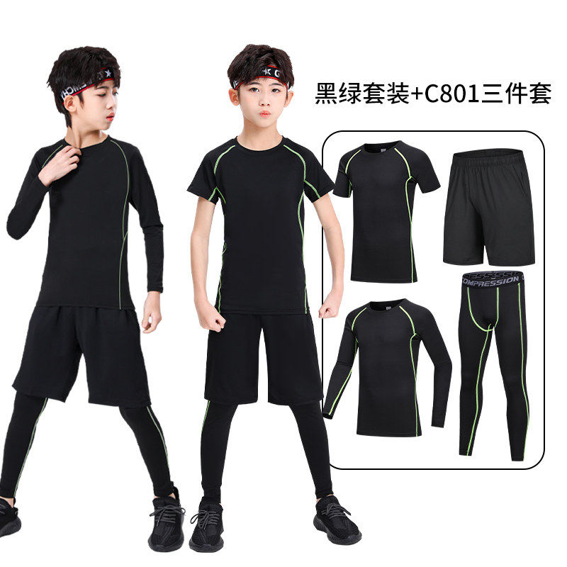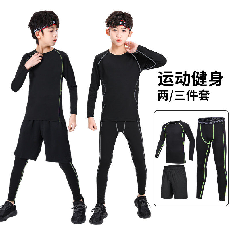 儿童紧身衣训练服速干衣男童秋冬篮球足球打底运动健身服套装男孩