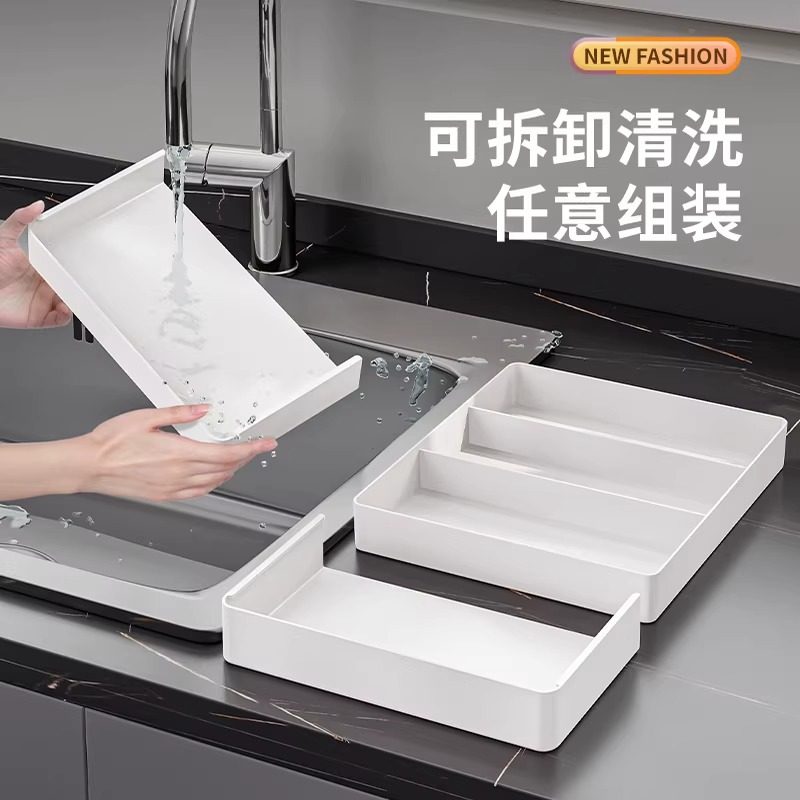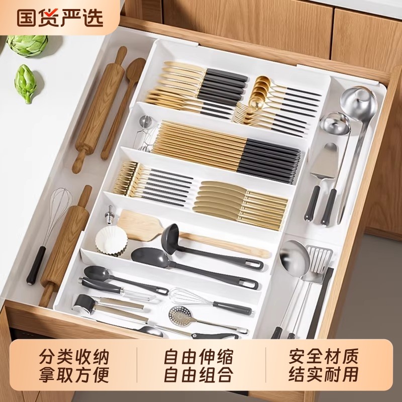艾仕可厨房抽屉分隔收纳盒可伸缩餐具筷子刀叉勺多功能整理盒碗碟