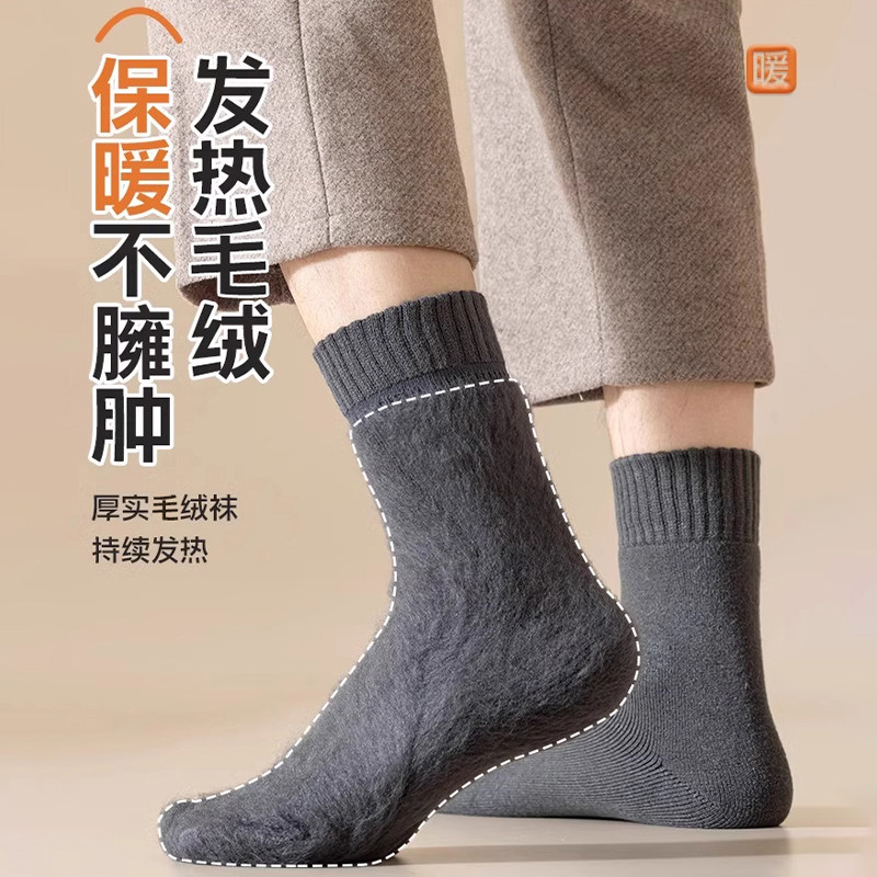 厚袜子男款秋冬加绒加厚仿羊毛中筒袜睡眠地板袜男士防臭保暖长袜