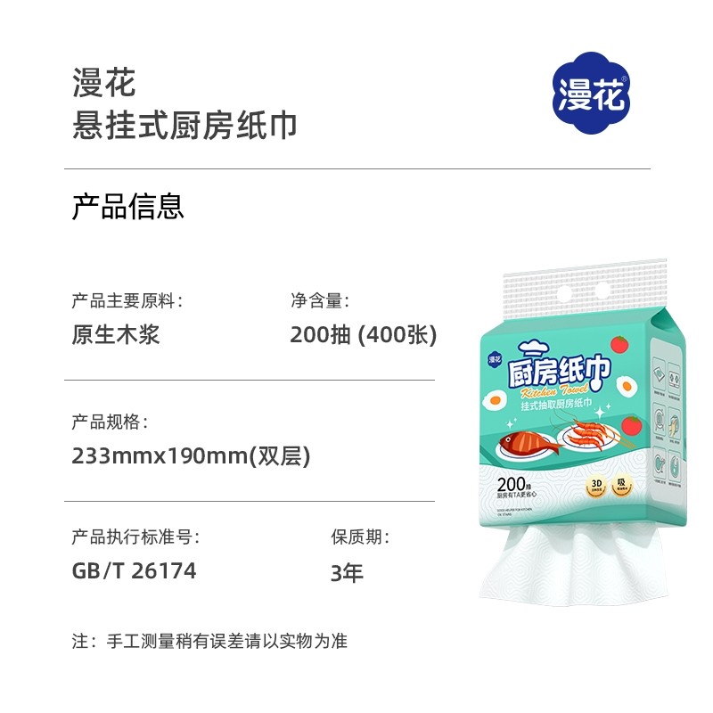 漫花厨房纸巾大包悬挂抽取式专用抽纸吸水纸纸抽挂式家庭装吸油