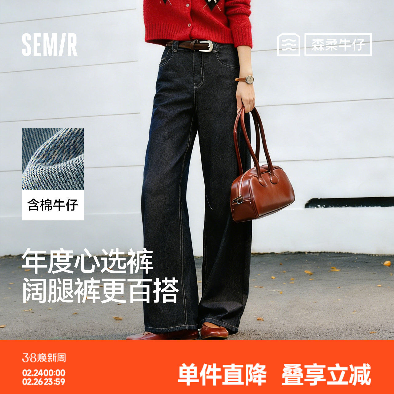 森马牛仔裤女春含莱赛尔阔腿裤2026新款复古港风遮肉显腿长拖地裤