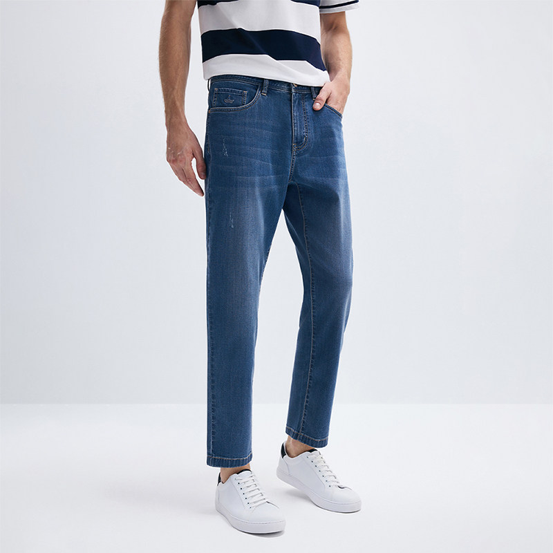 森柔牛仔森马牛仔裤男小脚裤复古水洗长裤夏季裤子直筒显高显腿长