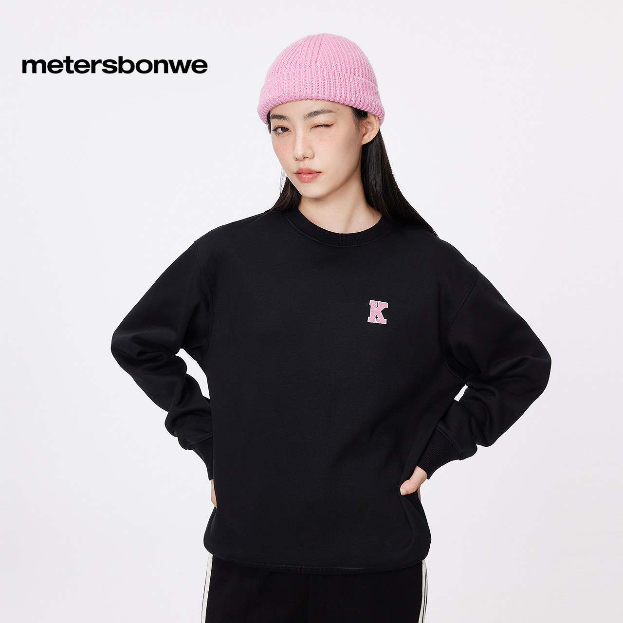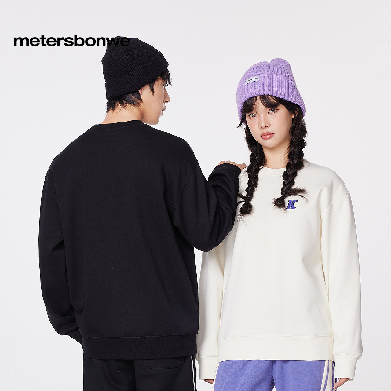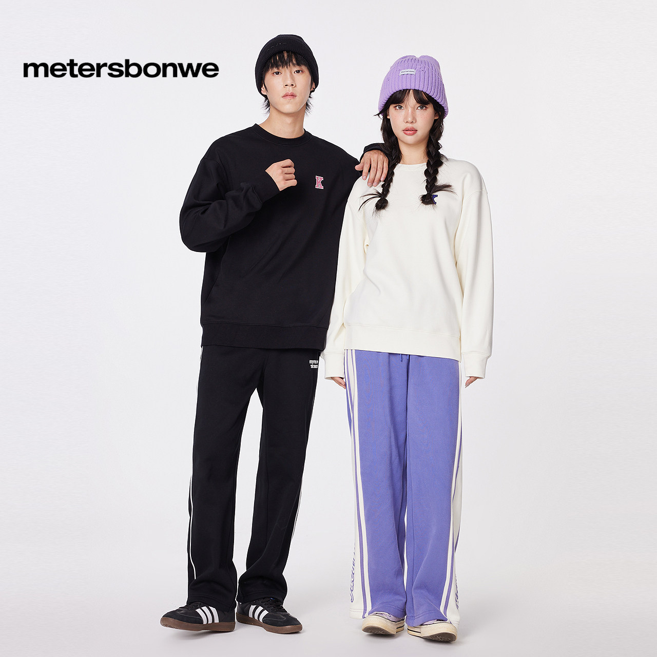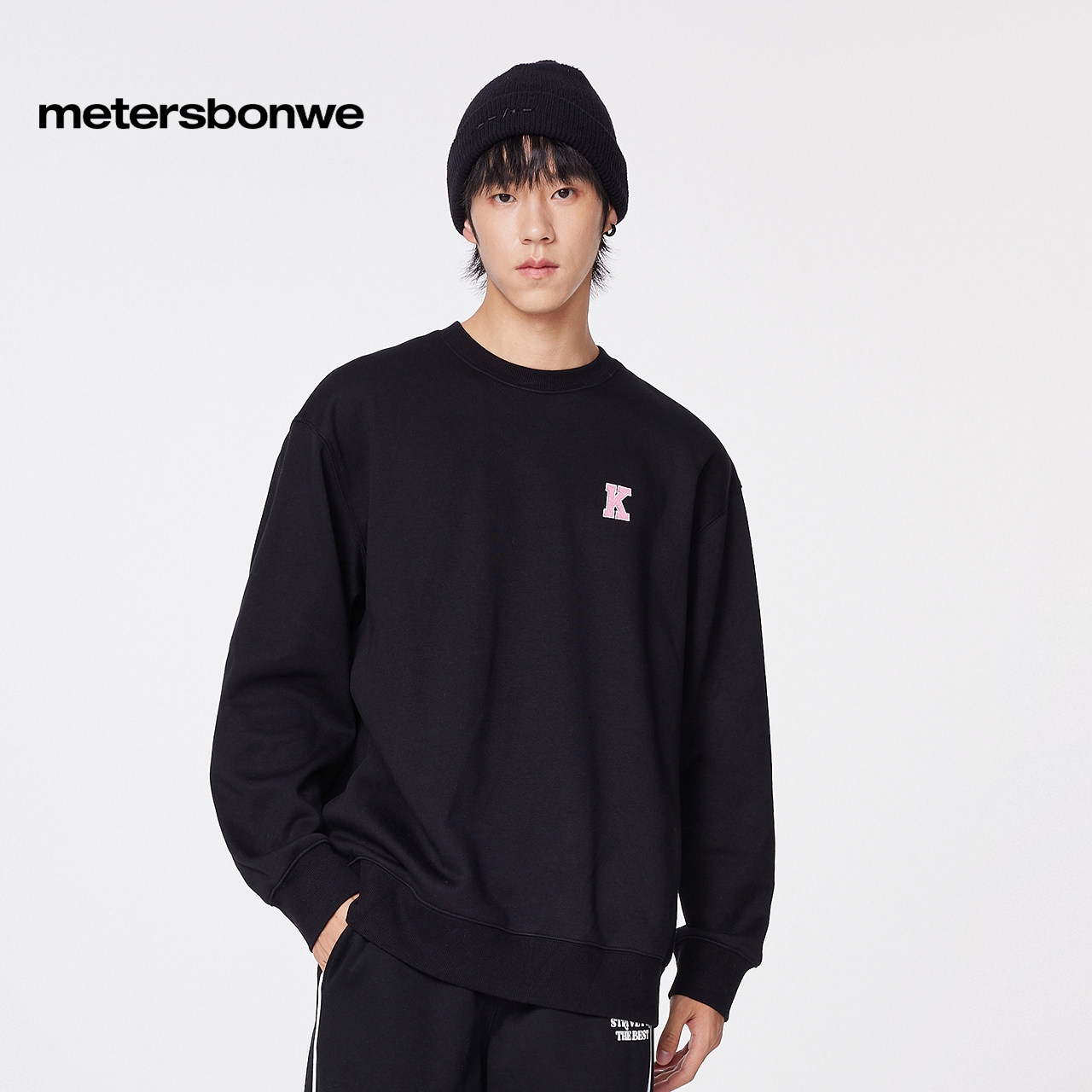 美特斯邦威卫衣男士秋季新款针织舒适加绒简约印花圆领套头男上衣
