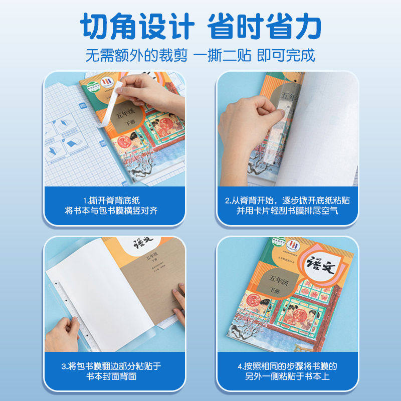 得力包书皮自粘透明包书膜磨砂切角款包书膜16K中小学生一年级三四二年级本子皮包书纸全套上册a4书壳保护套