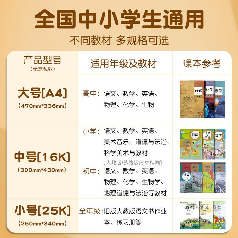 包书皮自粘透明磨砂书皮纸小学生专用一年级二三年上册中号16k课本2025新款书本封皮保护套书套书膜全套贴纸