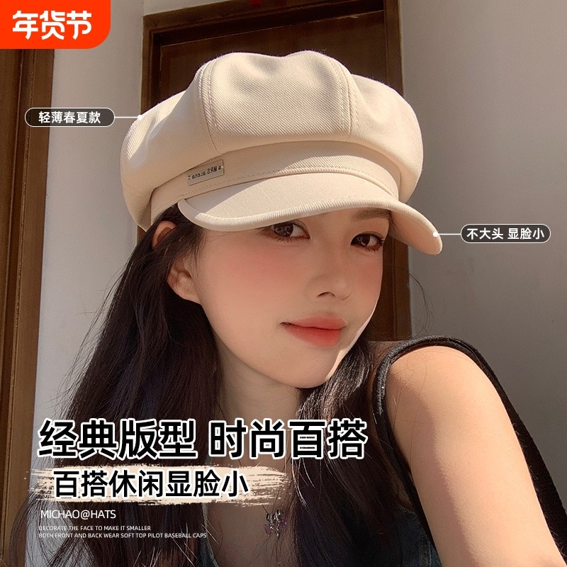 贝雷帽女2024新款韩版时尚百搭大头围八角帽显脸小春秋鸭舌画家帽