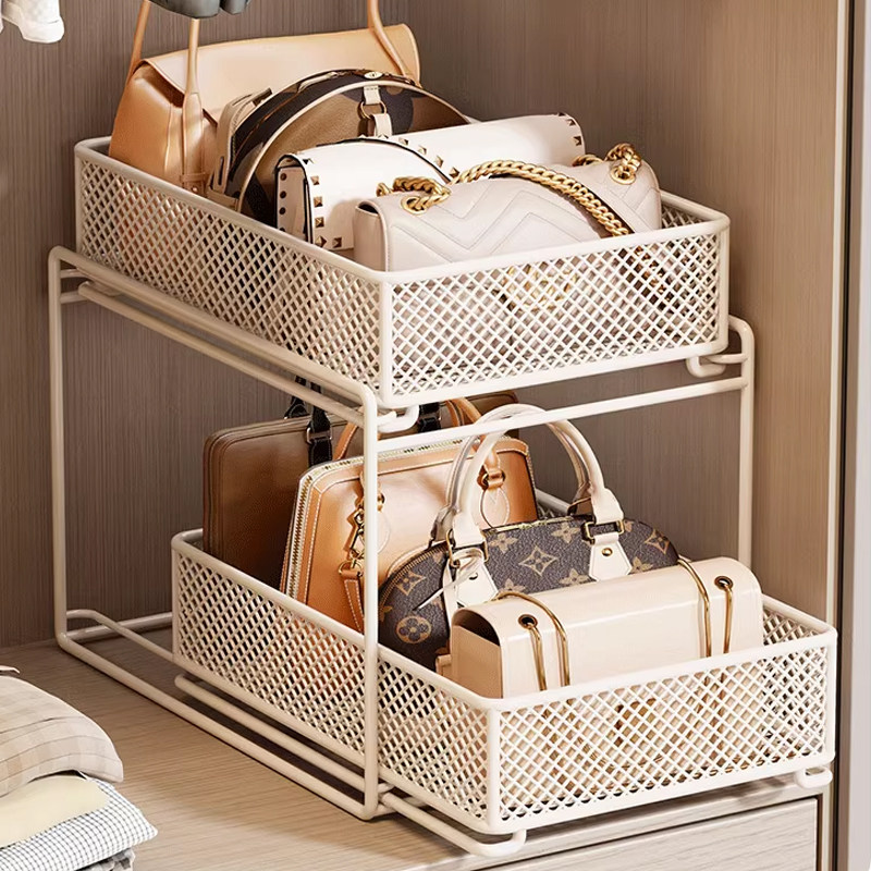 衣柜内抽屉包包收纳分隔板的置物架存放盒抽拉架子放置展示柜挂袋