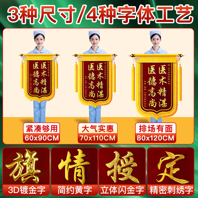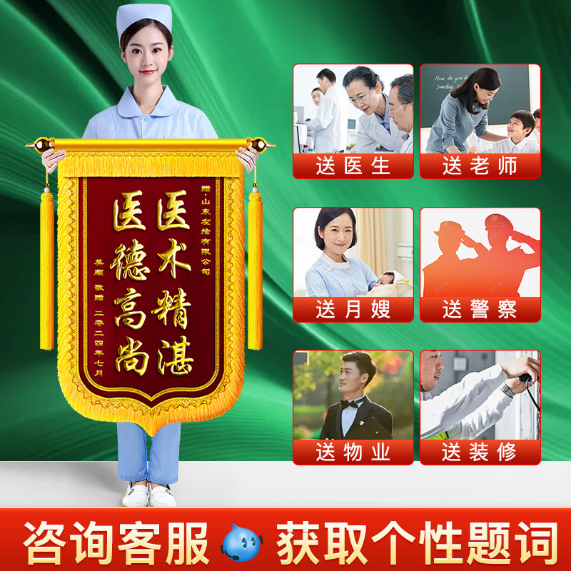 高档锦旗定做定制感谢医生护士送幼儿园老师物业民警月嫂美容院装修公司驾校教练教师律师制作生日刺绣旌旗