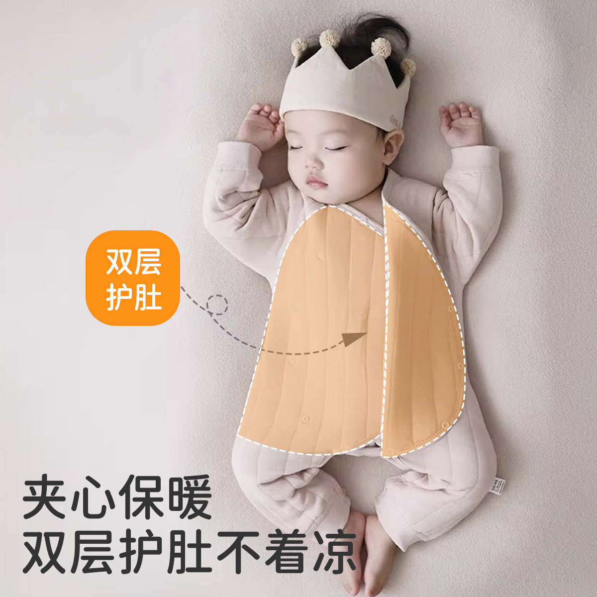 婧麒新生儿婴儿衣服秋冬夹棉满月纯棉初生宝宝秋装连体衣a类爬服