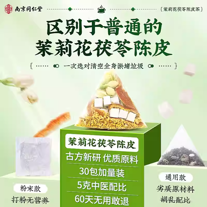 南京同仁堂茉莉花茯苓陈皮茶正品中药材桂花排浊气体香茶养生茶包