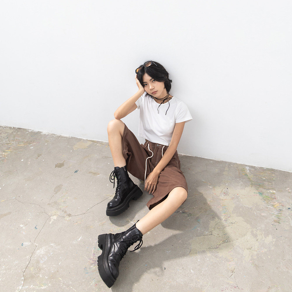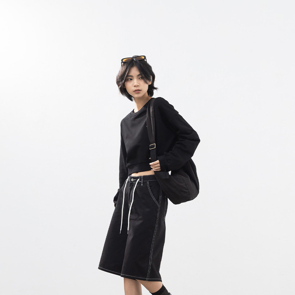 QUEENSHOP 2025秋冬新品女装低腰设计配色车线磨毛七分裤04101969