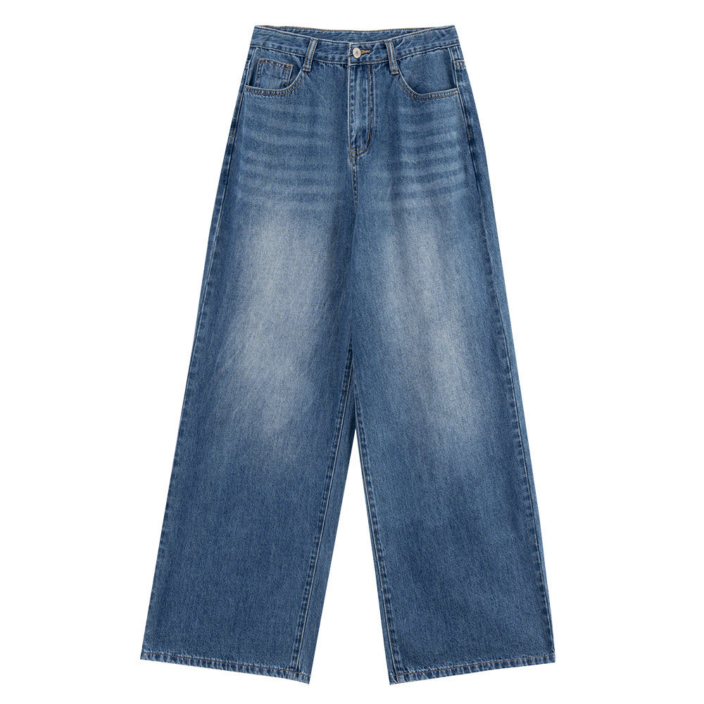 QUEENSHOP 2025秋冬新品女装低腰水洗宽版牛仔长裤04011798