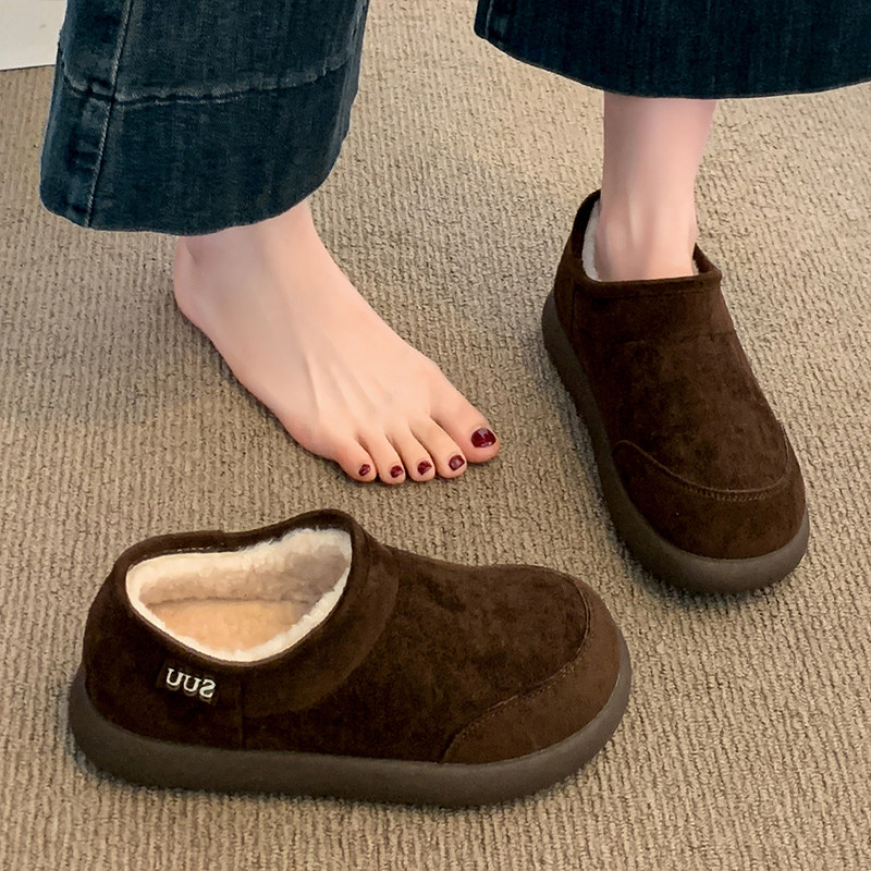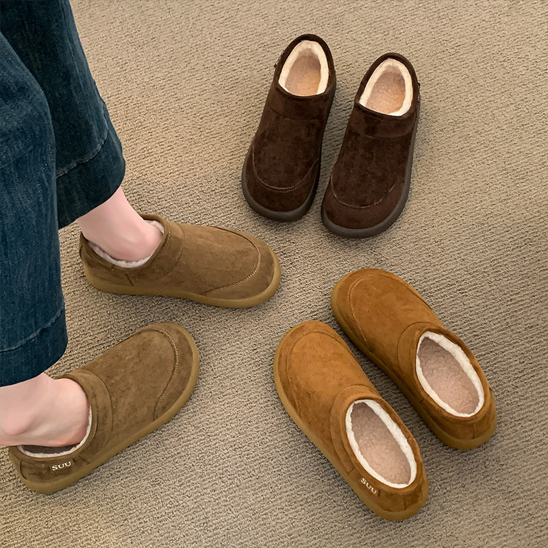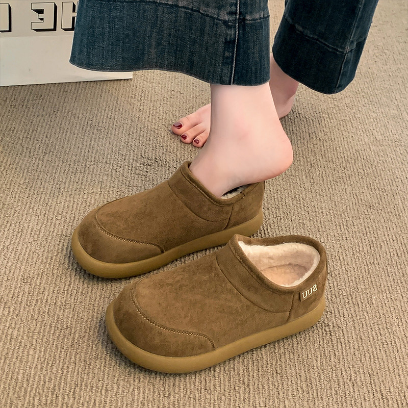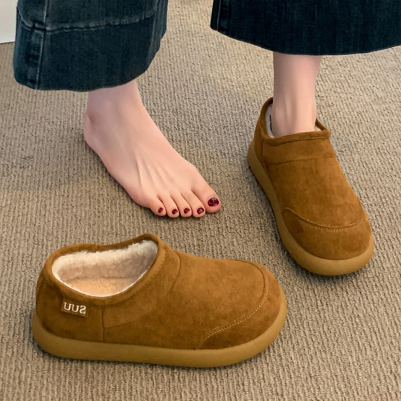 低帮厚底雪地靴女2025新款冬季懒人一脚蹬毛毛棉鞋加绒加厚女鞋子