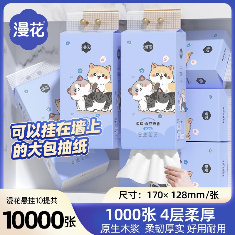 漫花10提悬挂式抽纸家用实惠装整箱批厕纸餐巾纸卫生纸面巾抽气垫