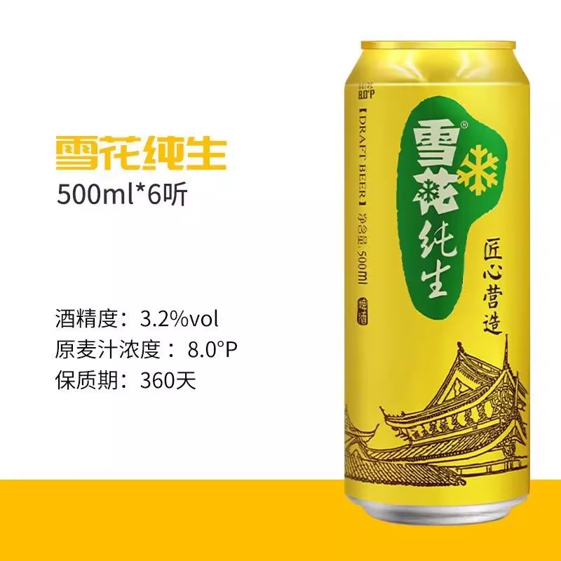 雪花纯生啤酒500ML聚会聚餐首选可冰镇500ml*12/箱雪花匠心雪花金