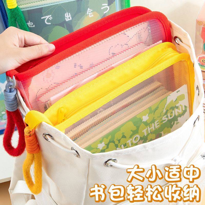 文件袋透明拉链式A4手提文件夹大容量ipad包多巴胺上课通勤手提包
