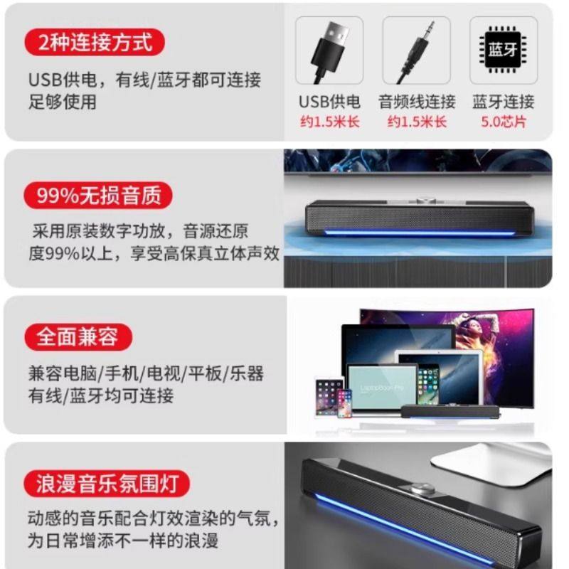 柏林之声蓝牙多媒体重低音炮音箱家用电脑桌面长条小音响2025新款