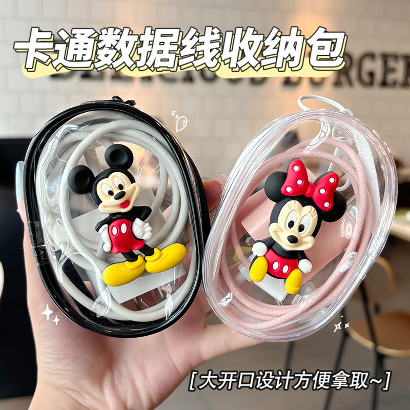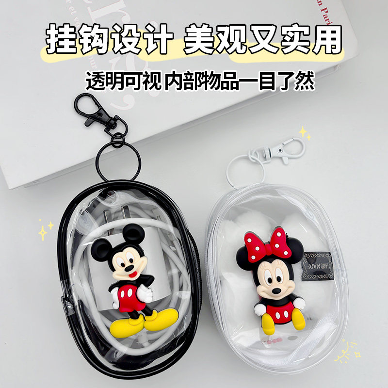 可爱米奇透明数据线收纳包数码充电器理线保护可视多用整理便携包