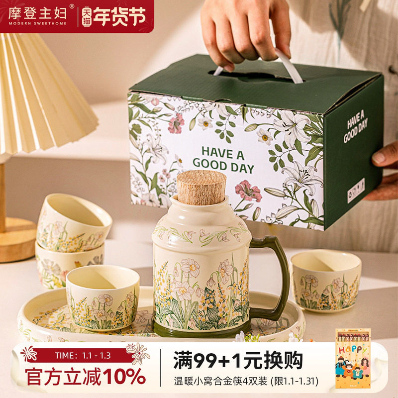手提礼盒 一壶一杯 搭配托盘 高温贴花