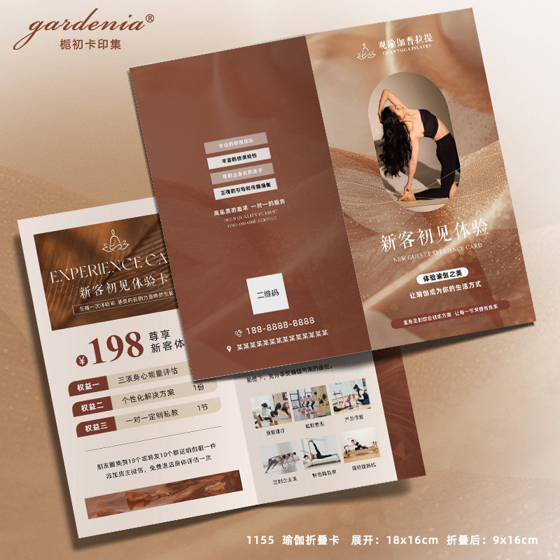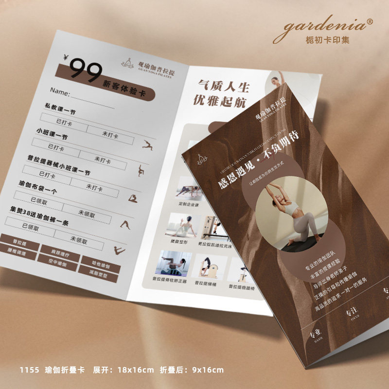美拉德色系瑜伽普拉提折叠卡设计印刷健身减肥开业活动宣传单定制