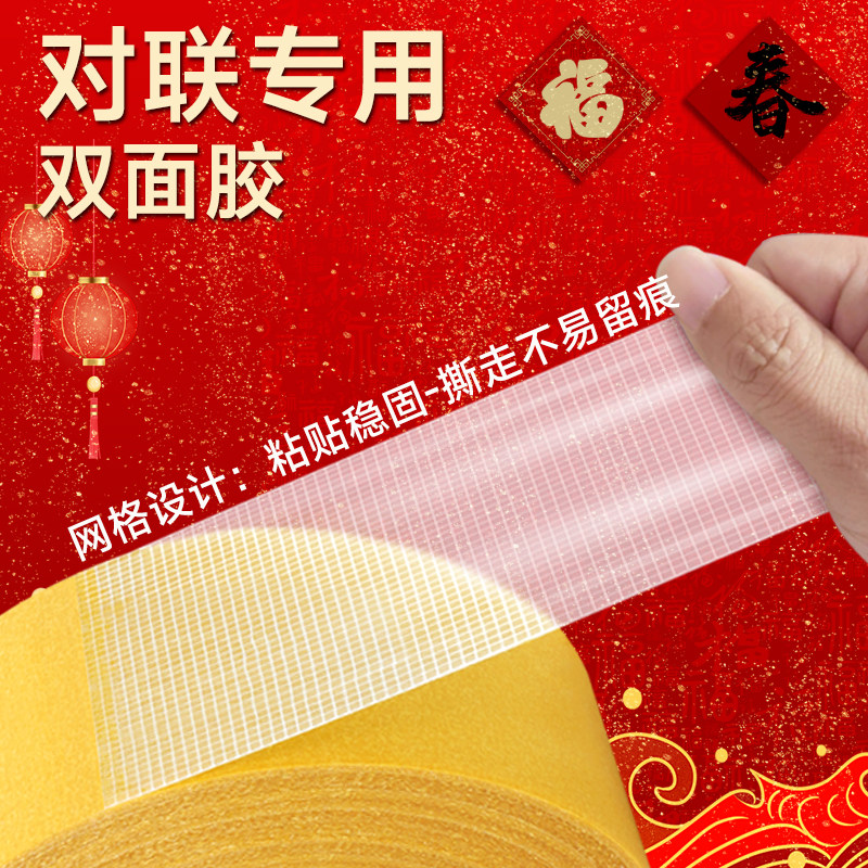 贴春联网格双面胶高粘度强力固定贴对联专用不留痕透明墙面易撕无残胶贴片粘福字地板地垫地毯拼接布基胶带