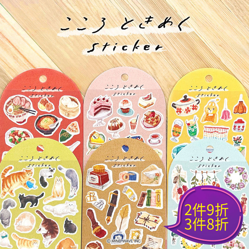 日本mind wave贴纸心跳加速系列手绘风格中华街茶室花束文具复古流行小物猫手帐日记相册装饰拼贴素材贴画