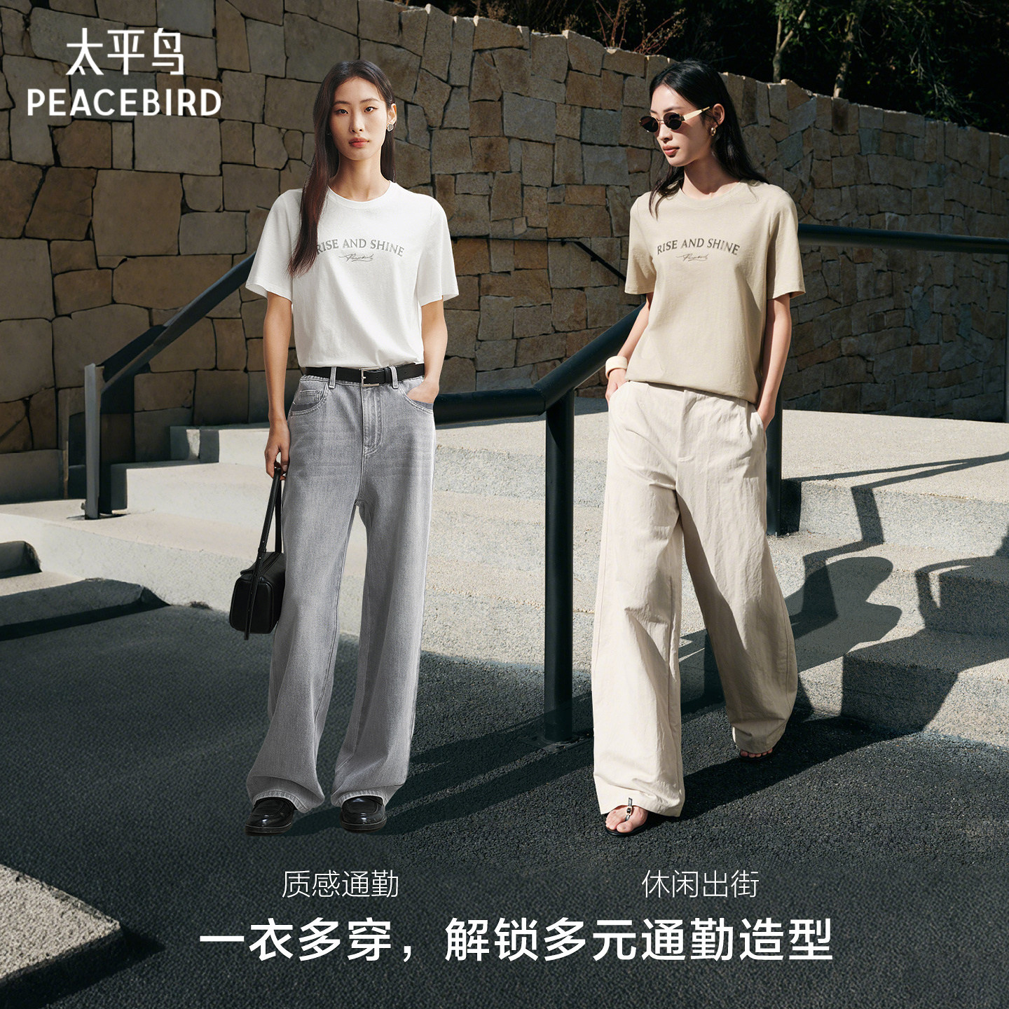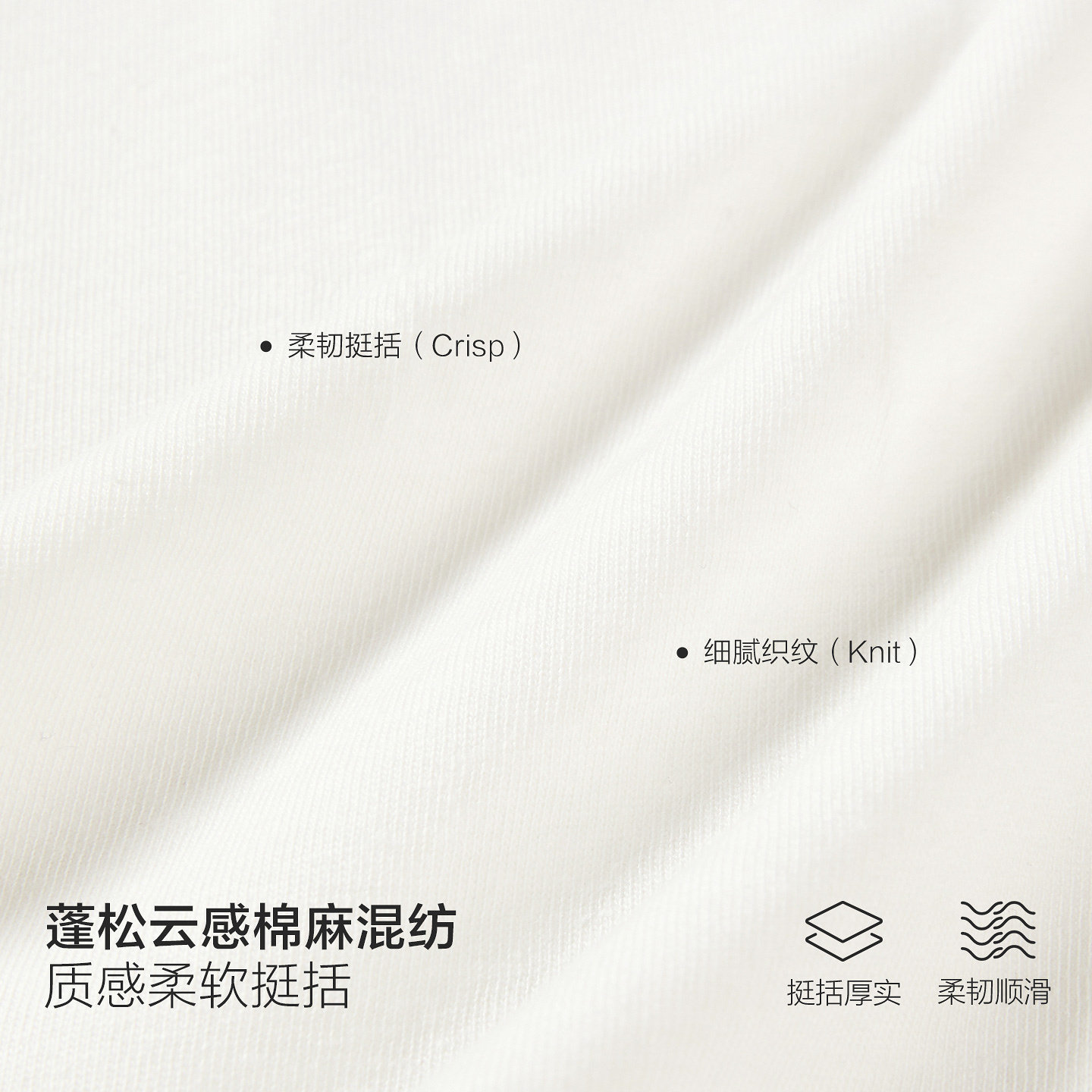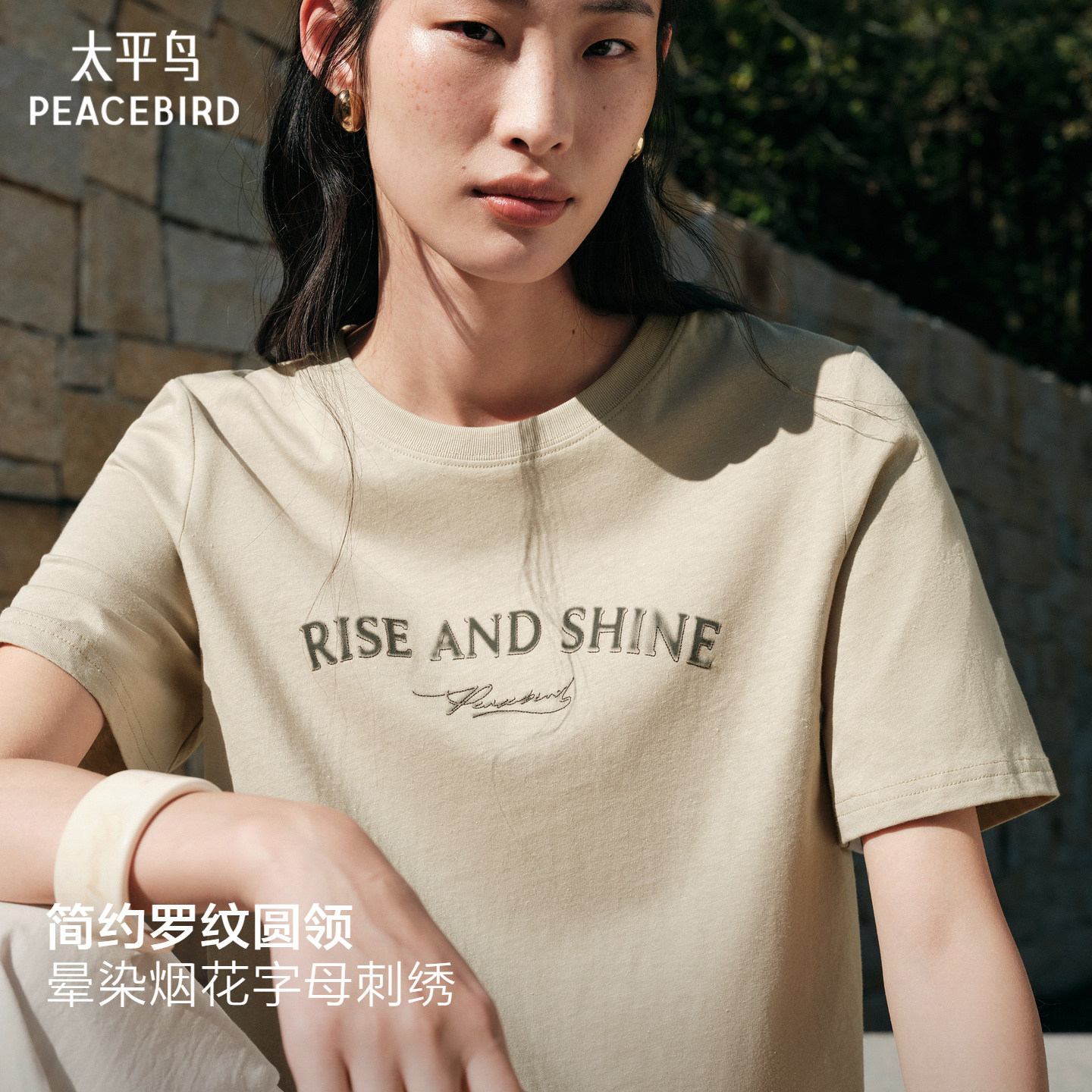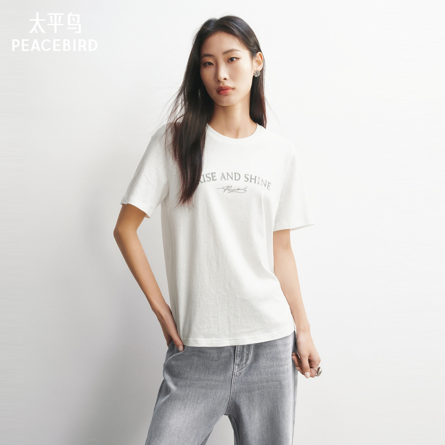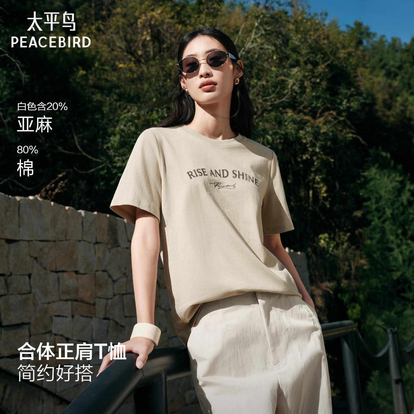 太平鸟 亚麻混纺正肩短袖T恤26春夏新款女士字母印花休闲上衣多搭