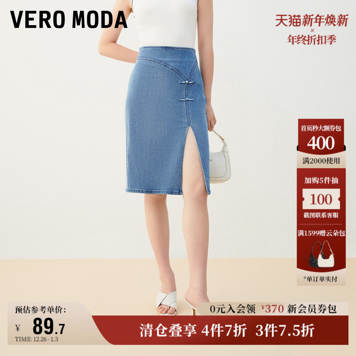Vero Moda奥莱半身裙秋冬清仓高腰国风通勤优雅开叉牛仔裙女百搭