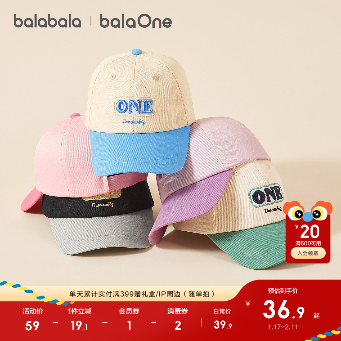 巴拉巴拉儿童防晒帽男女童棒球帽户外休闲运动郊游帽子时尚空顶帽