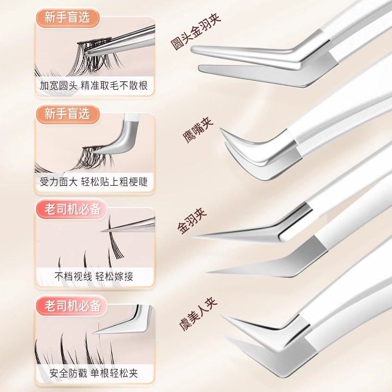 高精密假睫毛镊子拔眉贴双眼皮不锈钢金羽夹专用套装美睫师尖头