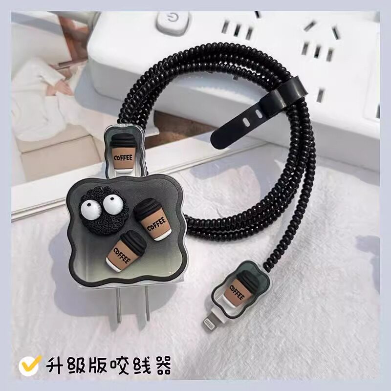 数据线保护套适用苹果17promax手机快充20w充电器壳iPhone16pro波浪咖啡煤球15PM硅胶创意14保护套防折断17软